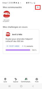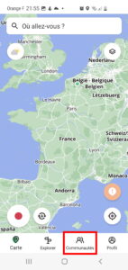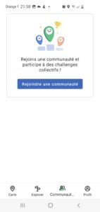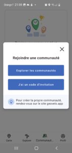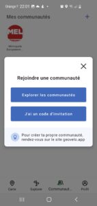 Pour commencer, depuis l’écran d’accueil de l’application, cliquez sur le bouton communauté.