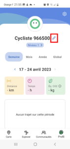 Vous arrivez sur la page de profil, cliquez sur l’icône du crayon.
