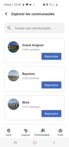 En explorant les communautés (uniquement les communautés lié à un territoire (ville, communauté urbaine, département,…))