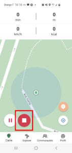 Une fois votre trajet terminé, cliquez sur le bouton Stop