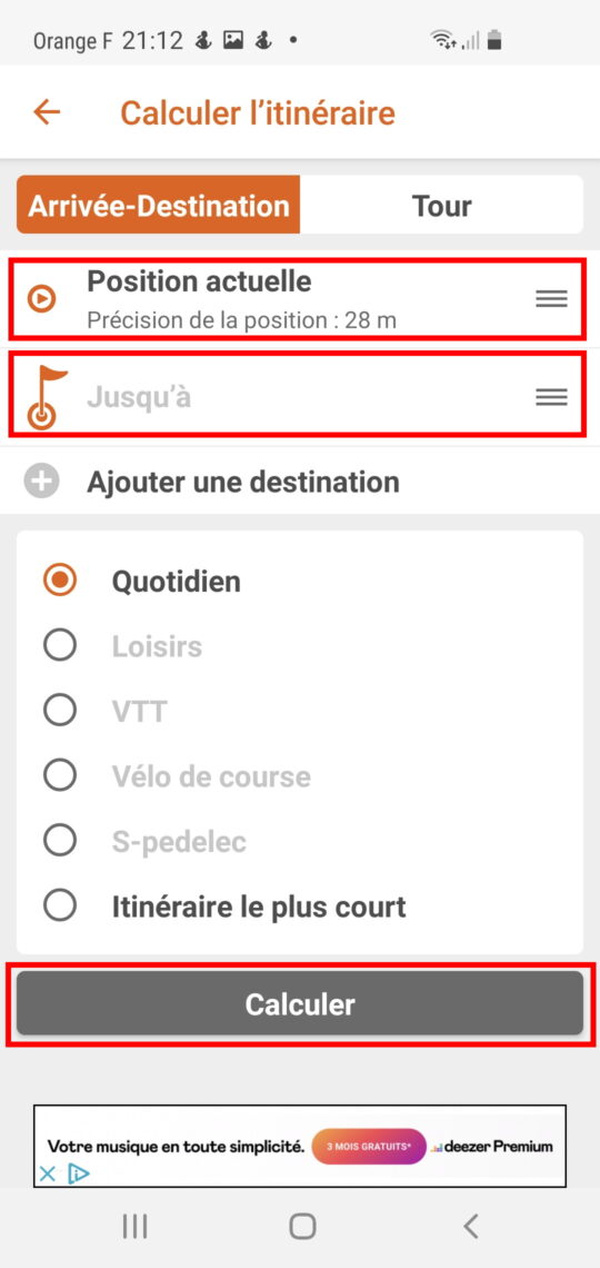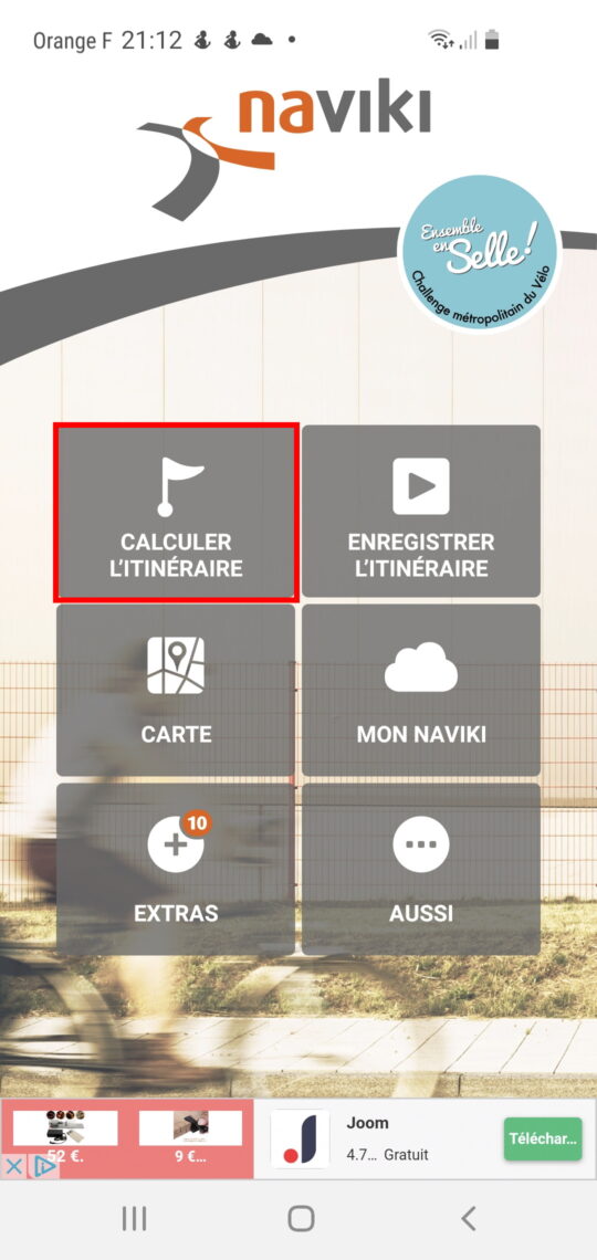 Pour créer un itinéraire sur l’application, ouvrez celle-ci et cliquez sur « calculer l’itinéraire ».