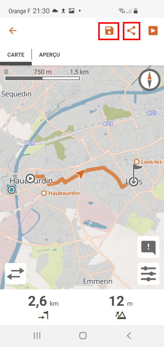 Lorsque vous êtes sur la page de détail de cet itinéraire, vous pouvez cliquez sur l’icône