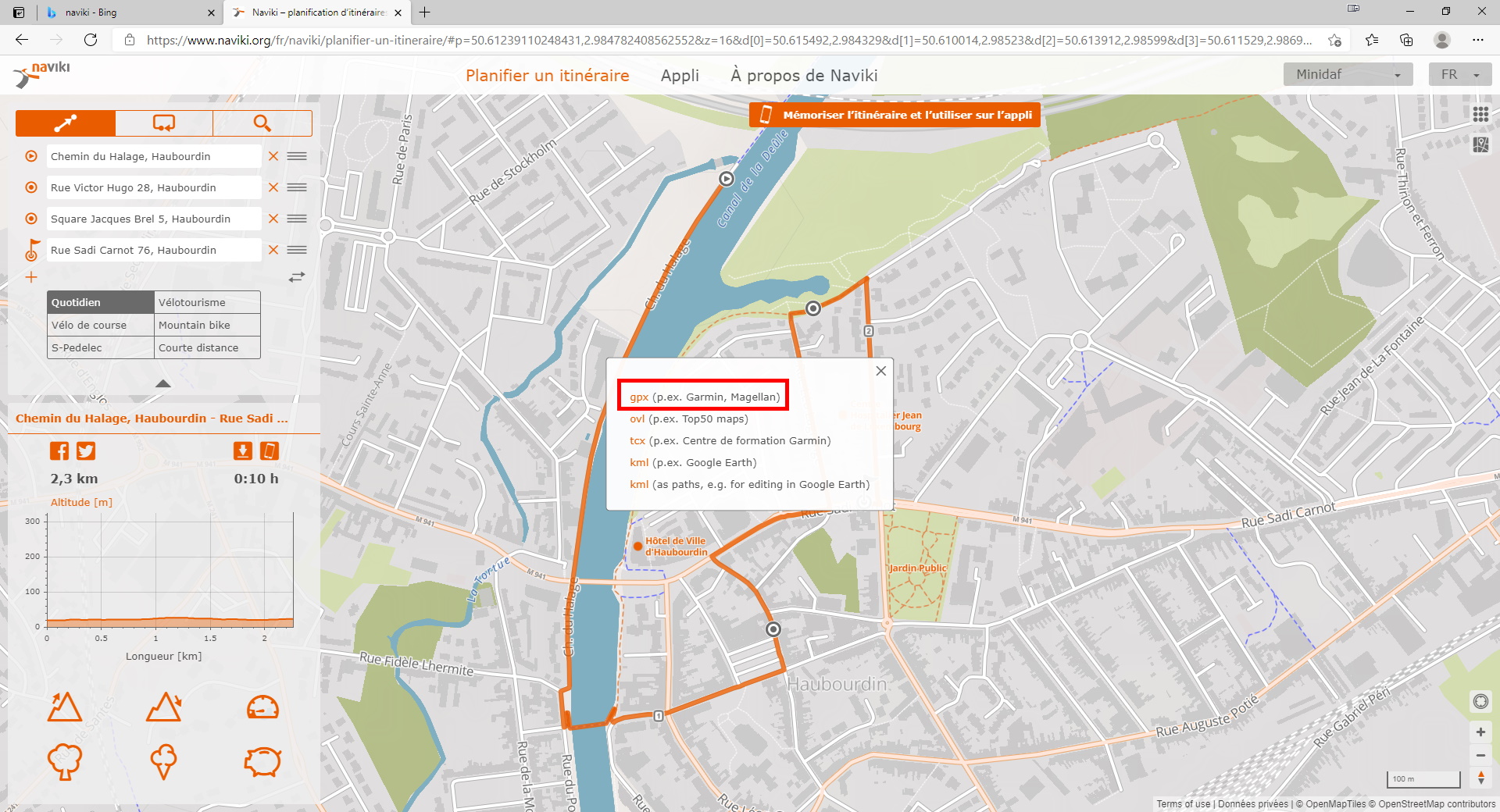 Vous arrivez sur une page vous présentant l’itinéraire généré.