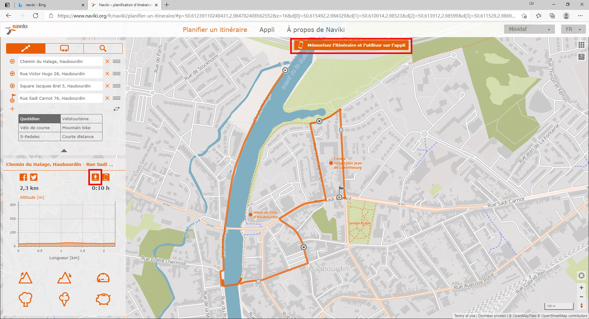 Cela l’enregistrera dans votre liste « Mes itinéraires ».